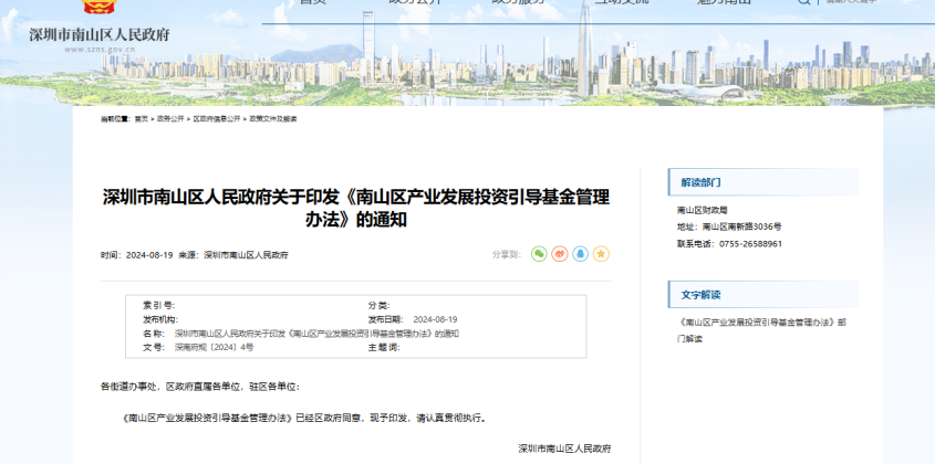 投資界(ID:pedaily2012)8月20日消息,近日,《南山區(qū)產業(yè)發(fā)展投資引導基金管理辦法》發(fā)布,《管理辦法》共三十條,包括總...