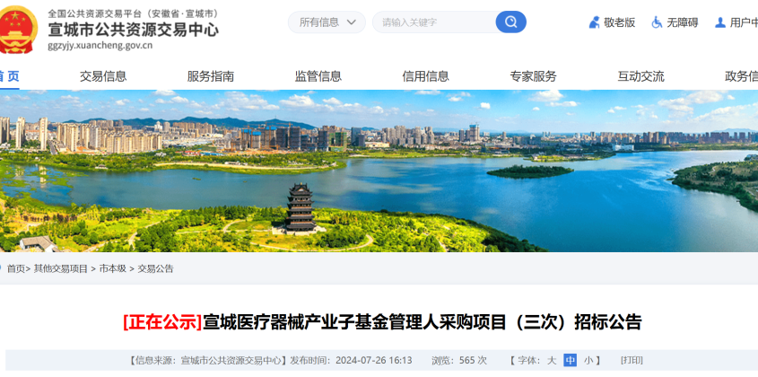 近日,宣城醫(yī)療器械產(chǎn)業(yè)子基金管理人采購項(xiàng)目(三次)招標(biāo)公告發(fā)布。據(jù)悉,基金主要投資于非生物醫(yī)藥的醫(yī)療領(lǐng)域。以下為原文...
