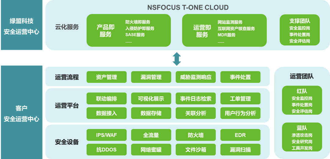 安全運營中心建設方案,基于綠盟智能安全運營平臺,整合安全設備能力,配合T-ONE CLOUD云化服務,為客戶提供貫穿防護、檢測、響應和處置的安全運營體系建設,輸出彈性多樣的安全能力,實現(xiàn)資產(chǎn)、威脅、脆弱性閉環(huán)管理,實現(xiàn)企業(yè)整體安全風險可視可控。