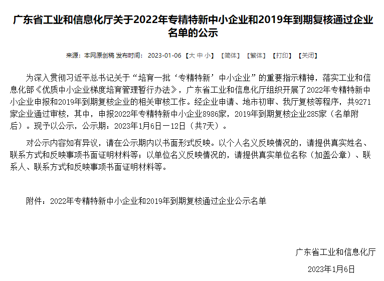 2023年1月6日,廣東省工業(yè)和信息化廳公示了2022年專精特新中小企業(yè)名單,興瑞科技(002937)子公司東莞中興瑞電子科技有限公司憑借專業(yè)化、精細(xì)化、特色化和創(chuàng)新能力等專精特新屬性成功入選。