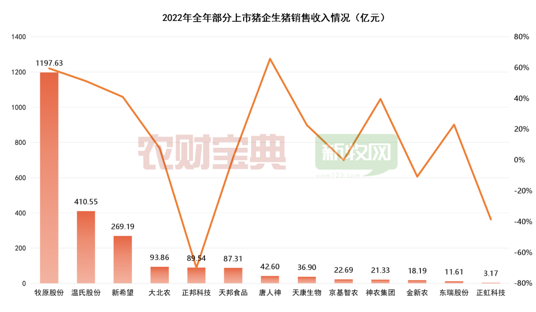 據(jù)新牧網(wǎng)記者統(tǒng)計,2022年,京基智農(nóng)生豬銷售收入為22.69億元。