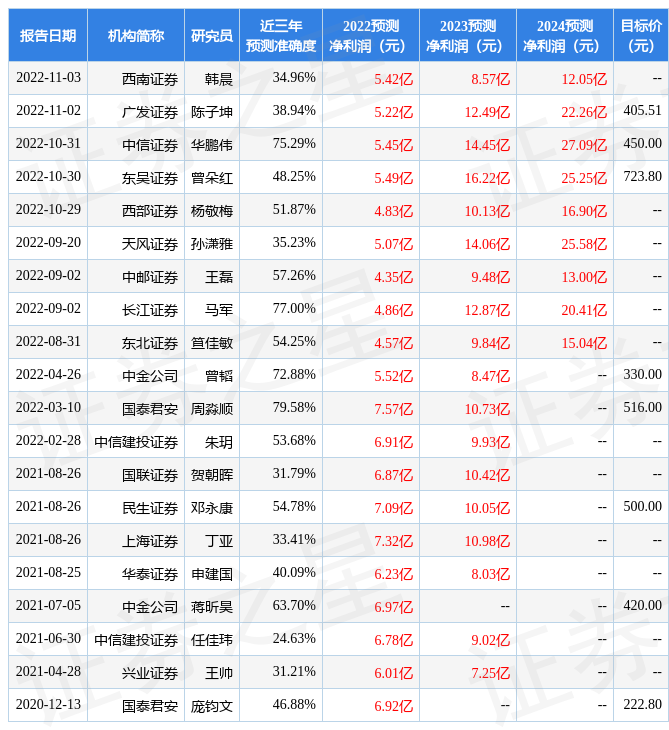 最新盈利預(yù)測(cè)明細(xì)如下: