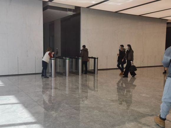 (新潮能源所在辦公樓安防森嚴(yán),乘梯進(jìn)入均需刷卡;苗詩雨/攝)