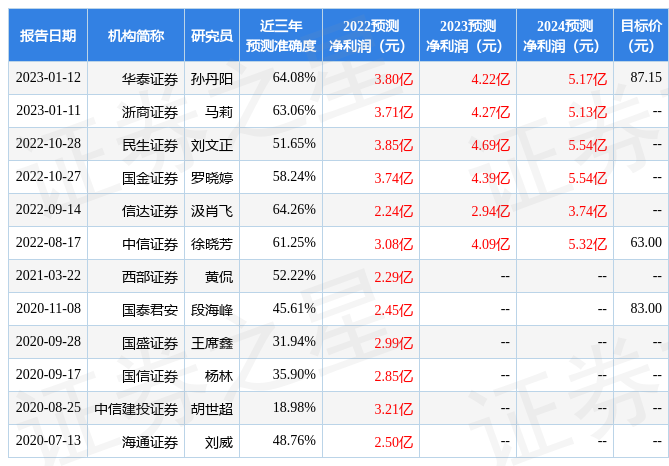 最新盈利預(yù)測(cè)明細(xì)如下: