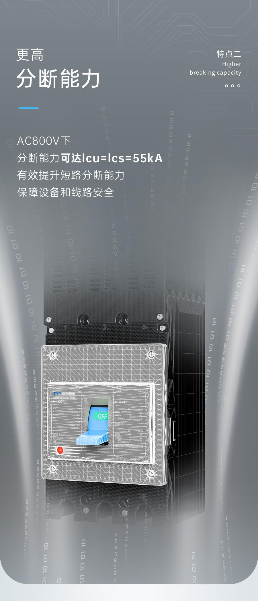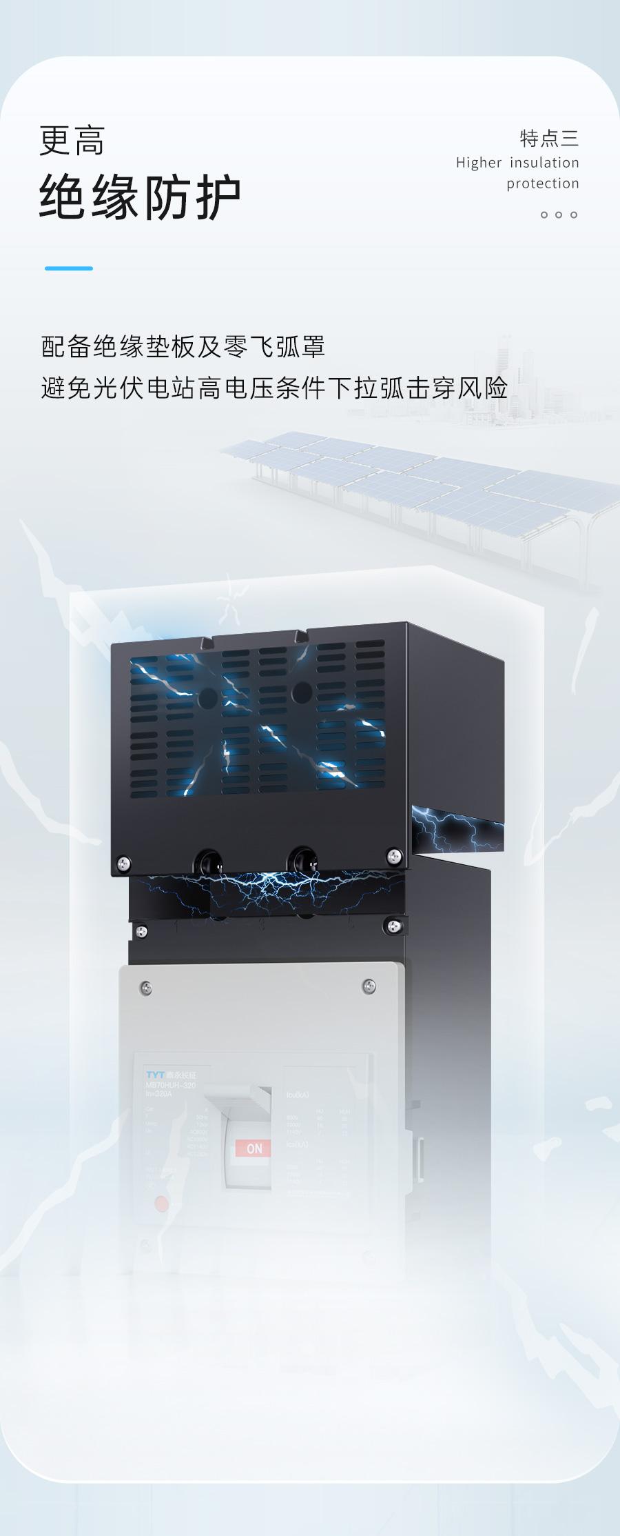 光伏發(fā)電更高的電壓意味著更低的成本但同時(shí)也對(duì)配電產(chǎn)品提出了更高的性能、耐壓和可靠性要求針對(duì)行業(yè)發(fā)展趨勢(shì)TYT泰永長(zhǎng)征推出MB70HUH系列智慧物聯(lián)高電壓塑殼斷路器做好光伏電站安全“守門員”TYT泰永長(zhǎng)征MB70HUH系列智慧物聯(lián)高電壓塑殼斷