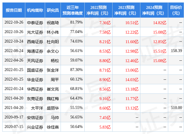 以下是詳細(xì)的盈利預(yù)測(cè)信息: