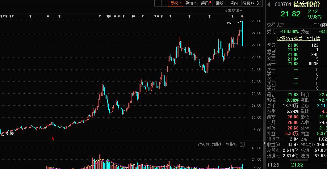 德宏股份開(kāi)盤后跳水跌停