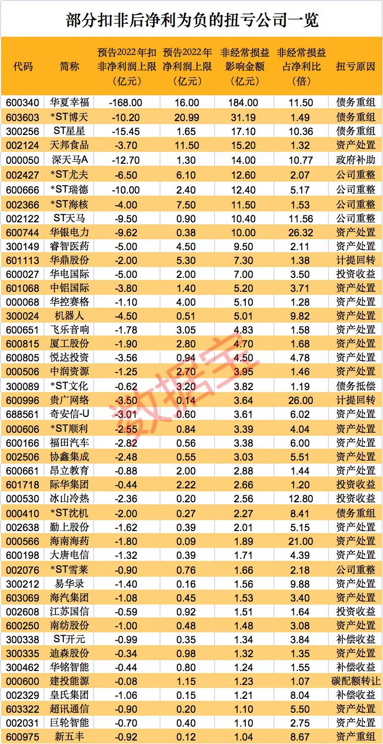 上述扭虧公司,業(yè)績是否真的“扭虧”?以扣非凈利潤看,其中有70家公司扣非后凈利上限仍為負(fù)值,也就是說,這些公司扭虧是靠賣資產(chǎn)、政府補助、投資收益、資產(chǎn)重組等等非經(jīng)常損益項實現(xiàn)的。