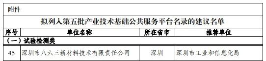 近日,工業(yè)和信息化部公布第五批國家產(chǎn)業(yè)技術(shù)基礎(chǔ)公共服務(wù)平臺(tái)名單,深圳市八六三新材料技術(shù)有限責(zé)任公司(以下簡(jiǎn)稱:863檢測(cè))憑借完善的技術(shù)創(chuàng)新體系、扎實(shí)的專業(yè)研究基礎(chǔ)、雄厚的技術(shù)資源、完備的檢測(cè)試驗(yàn)?zāi)芰岸鄬哟蔚臋z驗(yàn)檢測(cè)人才隊(duì)伍等優(yōu)勢(shì)入選試驗(yàn)檢測(cè)類產(chǎn)業(yè)技術(shù)基礎(chǔ)公共服務(wù)平臺(tái),成為深圳在新材料領(lǐng)域的首家入選企業(yè)。