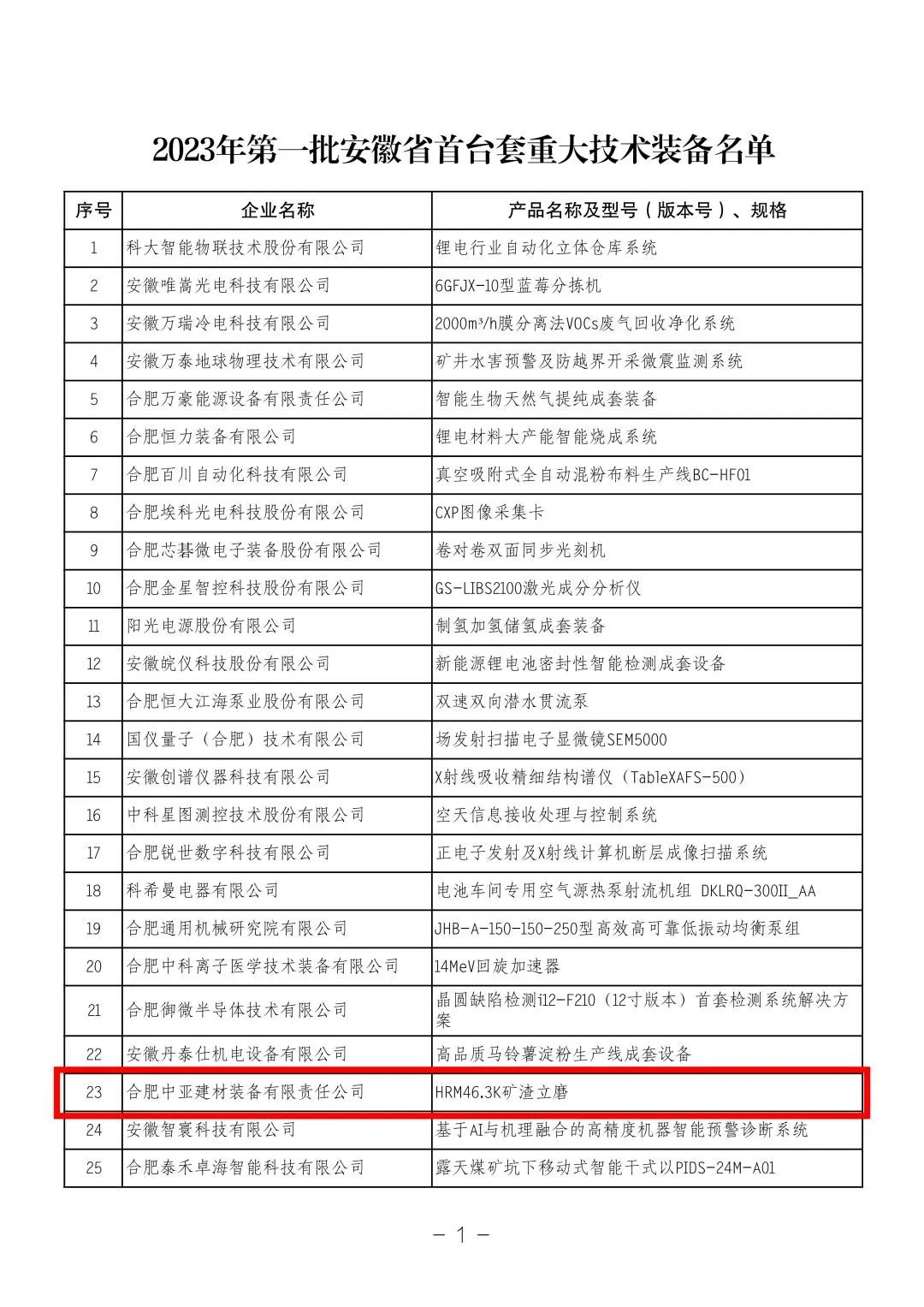 合肥院中亞裝備公司產(chǎn)品入選2023年第一批安徽省首臺套重大技術(shù)裝備名單