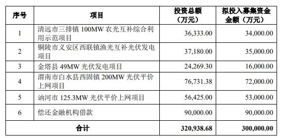 公告顯示,經中國證監(jiān)會《關于核準晶科電力科技股份有限公司公開發(fā)行可轉換公司債券的批復》(證監(jiān)許可〔2021〕931號)核準,公司于2021年4月23日公開發(fā)行了3,000萬張可轉換公司債券,發(fā)行價格為每張100元,募集資金總額為人民幣3,000,000,000.00元,扣除各項發(fā)行費用后,實際募集資金凈額為2,971,776,415.09元,上述款項已于2021年4月29日全部到賬。天健會計師事務所(特殊普通合伙)對公司本次公開發(fā)行可轉換公司債券的資金到位情況進行了審驗,并于2021年4月30日出具了天健驗〔2021〕191號《驗證報告》。公司已對上述募集資金進行了專戶存儲。公司《公開發(fā)行可轉換公司債券募集說明書》披露的募集資金投資計劃如下: