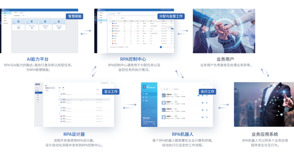 天喻BlueDocerRPA深度融合自研人工智能技術(shù),可模擬人在數(shù)字化設(shè)備中的操作,進(jìn)行復(fù)雜場(chǎng)景的智能決策,減少人為重復(fù)、繁瑣、大批量的工作任務(wù),真正滲透到企業(yè)的財(cái)務(wù)管理、運(yùn)營(yíng)管理、客服服務(wù)、人力資源、風(fēng)控內(nèi)審以及進(jìn)銷存等應(yīng)用場(chǎng)景,提升業(yè)務(wù)流程的自動(dòng)化、數(shù)字化和智能化水平。