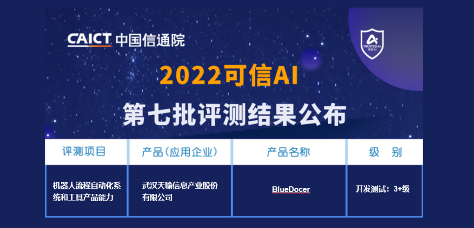 近日,中國(guó)信通院公布第七批“可信AI”評(píng)測(cè)結(jié)果,天喻BlueDocerRPA順利通過(guò)該測(cè)評(píng),并獲得本次測(cè)評(píng)“3+級(jí)”,意味著天喻信息(300205)在RPA產(chǎn)品技術(shù)方面的研發(fā)實(shí)力已獲國(guó)家級(jí)認(rèn)可,應(yīng)用成熟度已達(dá)到行業(yè)領(lǐng)先水平。