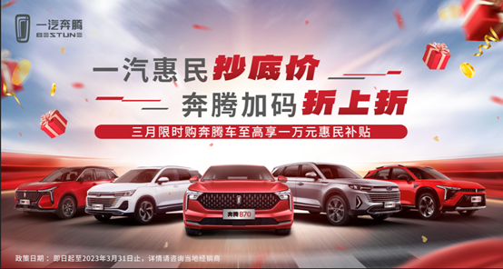 購車折上折,終身售后不用愁。無論對于新車首購還是升級換購,一汽奔騰都為用戶帶來了“等一等會后悔,先下手更實惠”的購車時機。必須再次提醒的是,此次中國一汽億元限時惠民補貼活動僅限吉林省內(nèi)用戶3月份購車,時機難得,抄底要趁早!