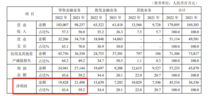 不過(guò),2022年該行的零售業(yè)務(wù)利潤(rùn)和利潤(rùn)占比都出現(xiàn)了下滑。