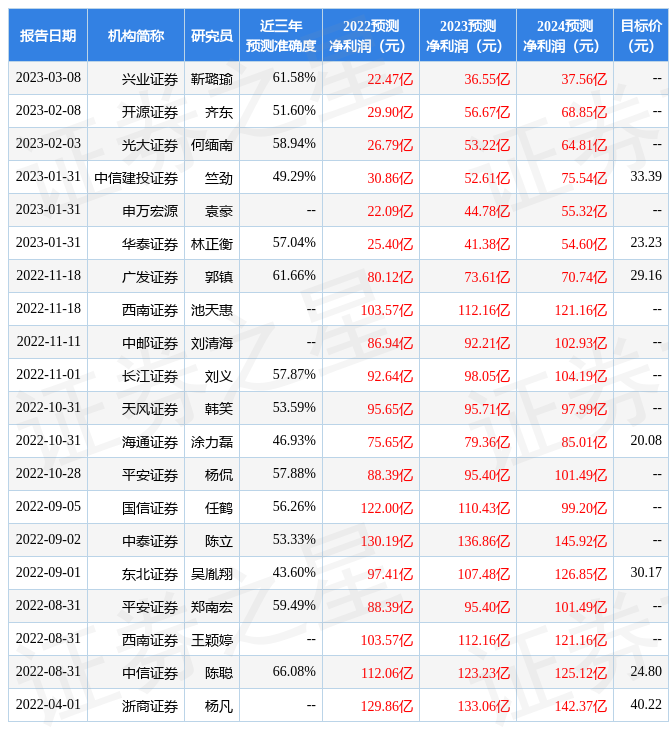 最新盈利預(yù)測明細(xì)如下: