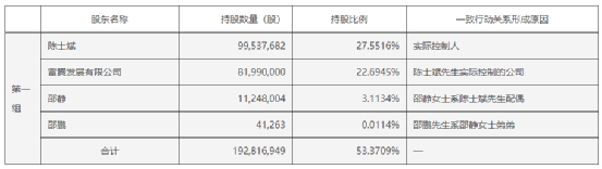 陳士斌和邵靜實(shí)際上一致行動(dòng)人,兩人為夫妻關(guān)系,加上富騰發(fā)展和邵靜弟弟邵鵬的股份,陳士斌夫婦控制的股份比例為53.37%。