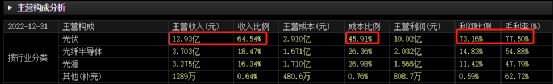 實(shí)際上,按行業(yè)分,光伏貢獻(xiàn)了公司65%的營(yíng)收,但成本比例只有45.9%,利潤(rùn)比例為此占到73%,毛利率高達(dá)77%。