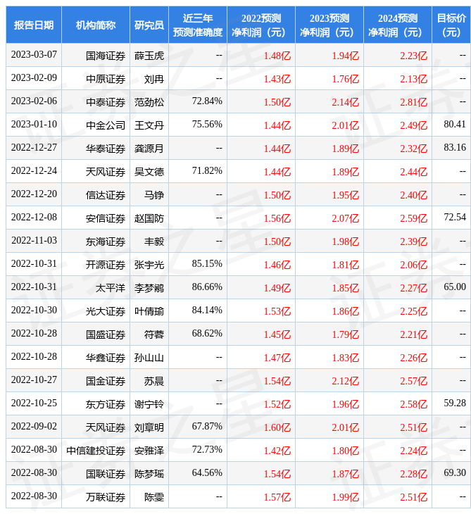 數(shù)據(jù)中心根據(jù)近三年發(fā)布的研報數(shù)據(jù)計算,太平洋李夢鷴研究員團隊對該股研究較為深入,近三年預測準確度均值高達86.66%,其預測2022年度歸屬凈利潤為盈利1.49億,根據(jù)現(xiàn)價換算的預測PE為47.79。