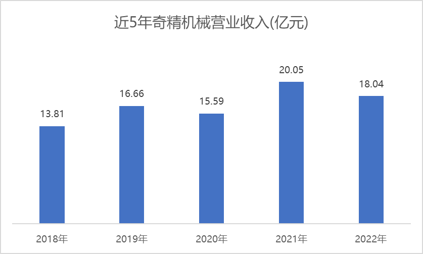 將時(shí)間線(xiàn)拉長(zhǎng),近5年,奇精機(jī)械營(yíng)收保持增長(zhǎng)態(tài)勢(shì),2021年首次突破20億元,2022年?duì)I收同比下降也與2021年的高基數(shù)有關(guān)。