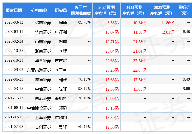 數(shù)據(jù)中心根據(jù)近三年發(fā)布的研報(bào)數(shù)據(jù)計(jì)算,中信證券陳旺研究員團(tuán)隊(duì)對該股研究較為深入,近三年預(yù)測準(zhǔn)確度均值高達(dá)93.19%,其預(yù)測2023年度歸屬凈利潤為盈利12.33億,根據(jù)現(xiàn)價(jià)換算的預(yù)測PE為10.17。