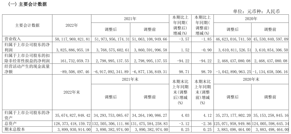 3月24日,豫園股份披露的2022年度業(yè)績報告顯示,報告期內(nèi),公司實現(xiàn)營業(yè)收入501.18億元,歸母凈利潤38.26億元,均與上年持平。