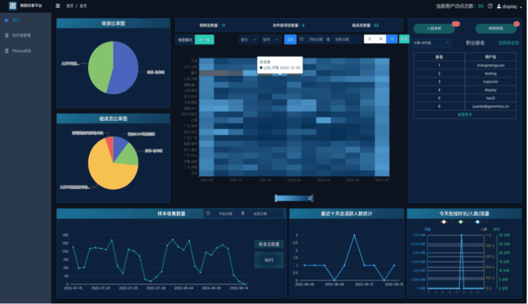 PM Online線上數(shù)據(jù)管理系統(tǒng)集成了PMseq 自動化病原分析數(shù)據(jù)平臺,使得病原鑒定組學數(shù)據(jù)在中心本地化集中存儲,實現(xiàn)用戶在線授權(quán)訪問,可以協(xié)助醫(yī)院實現(xiàn)病原組學檢測數(shù)據(jù)管理、病原統(tǒng)計、檢出頻率、病原譜和時空分布等統(tǒng)計分析功能;并且支持數(shù)據(jù)共享合作,臨床和基因組學科學研究,可為醫(yī)院及疾控等機構(gòu)的大數(shù)據(jù)分析與再挖掘提供強有力的技術(shù)平臺支撐。