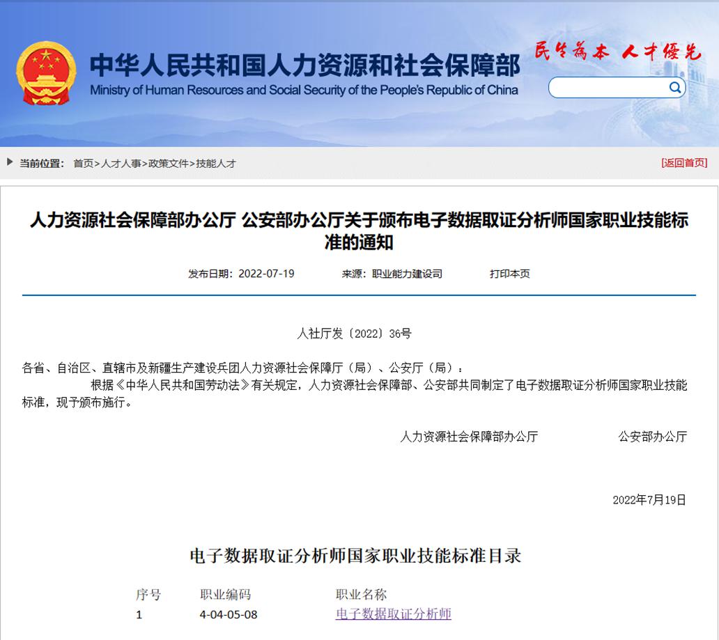 2022年7月,人力資源社會(huì)保障部辦公廳、公安部辦公廳頒布了電子數(shù)據(jù)取證分析師國(guó)家職業(yè)技能標(biāo)準(zhǔn),包括以下幾個(gè)方面。