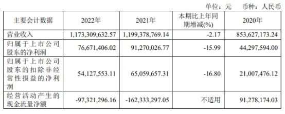 昨日晚間,杰普特發(fā)布2022年年度報告。2022年,杰普特實現(xiàn)營業(yè)收入11.73億元,同比下降2.17%,歸屬于上市公司股東的凈利潤7667.14萬元,同比下降15.99%;歸屬于上市公司股東的扣除非經(jīng)常性損益的凈利潤5412.76萬元,同比下降16.80%;經(jīng)營活動產(chǎn)生的現(xiàn)金流量凈額-9732.13萬元,上年同期為-1.62億元。