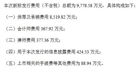 杰普特發(fā)行費用總計9778.58萬元,其中,支付給保薦機(jī)構(gòu)中金公司、聯(lián)席主承銷商紅塔證券的承銷及保薦費用8519.82萬元,支付北京金誠同達(dá)律師事務(wù)所的律師費用377.36萬元,支付瑞華會計師事務(wù)所(特殊普通合伙)的審計驗資費用367.92萬元。