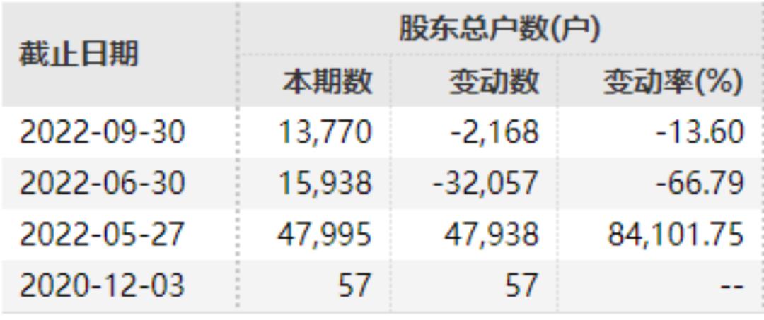 截至去年三季度末,該股有1.4萬(wàn)戶股東。