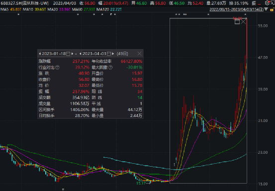 自1月18日開(kāi)始,該股便開(kāi)啟上漲之勢(shì),截至目前,該股已經(jīng)累計(jì)漲超257%。