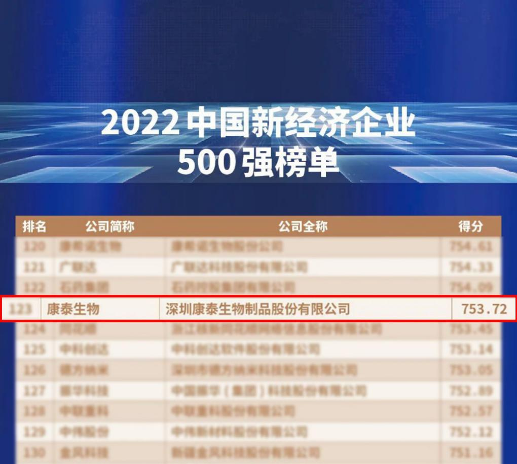 康泰生物榮登“中國新經(jīng)濟企業(yè)500強”