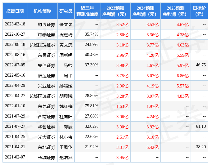 以下是詳細(xì)的盈利預(yù)測(cè)信息: