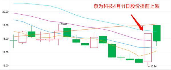 4月11日,泉為科技股價(jià)曾出現(xiàn)由跌轉(zhuǎn)漲的走勢(shì)。當(dāng)日收盤,該公司股價(jià)上漲13.38%報(bào)收18.39元/股。泉為科技在發(fā)布中標(biāo)公告前,股價(jià)即出現(xiàn)異動(dòng)的情況也受到了深交所的關(guān)注。