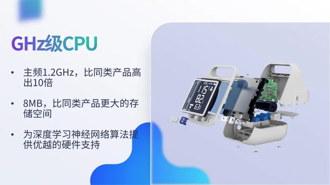 漢王電子血壓計(jì),采用雙傳感器模式,讓采集到的血壓信號(hào)更加優(yōu)質(zhì)。搭載GHz級(jí)的CPU,1.2G的主頻以超出同類產(chǎn)品數(shù)倍的性能,為漢王自研深度學(xué)習(xí)神經(jīng)網(wǎng)絡(luò)算法提供優(yōu)越的硬件支持,可對(duì)測(cè)量結(jié)果進(jìn)行深度優(yōu)化,在柯氏音法的基礎(chǔ)之上讓血壓檢測(cè)結(jié)果更加準(zhǔn)確。
