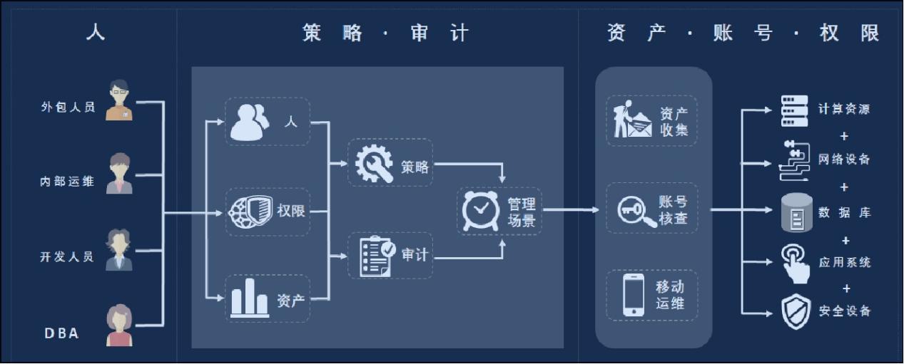 隨著業(yè)務(wù)系統(tǒng)的迅速發(fā)展,運(yùn)維安全的各種問題也逐漸凸顯,多種支撐系統(tǒng)和主帳號(hào)數(shù)量的不斷增加,網(wǎng)絡(luò)規(guī)模迅速擴(kuò)大,原有的賬號(hào)口令、權(quán)限認(rèn)證、審計(jì)管理措施已不能滿足企業(yè)目前及未來業(yè)務(wù)發(fā)展的要求,主要表現(xiàn)為:獨(dú)立數(shù)據(jù)庫形成身份信息孤島,自然人身份和業(yè)務(wù)系統(tǒng)帳號(hào)重疊,缺乏集中統(tǒng)一的資源授權(quán)管理平臺(tái)造成孤立的審計(jì),并缺乏關(guān)聯(lián)分析,無法對(duì)產(chǎn)生的各類問題有效進(jìn)行審計(jì)追蹤。