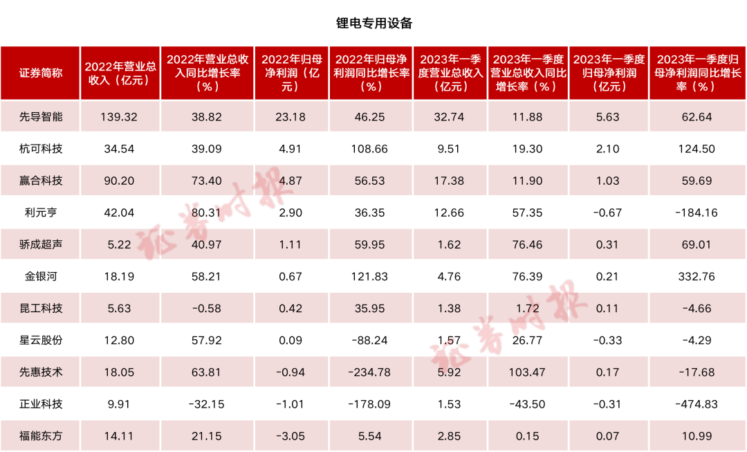 數(shù)據(jù)顯示,A股電池產(chǎn)業(yè)鏈上市公司2022年報和2023年一季報基本已出齊,總體上看,作為一個處于新能源風(fēng)口的行業(yè),多數(shù)上市公司2022年?duì)I收和利潤同比實(shí)現(xiàn)增長。