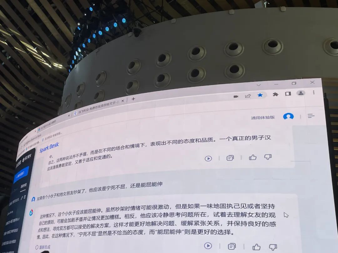 在5月6日的訊飛星火認(rèn)知大模型(簡稱“星火大模型”)成果發(fā)布會(huì)上,市場期待已久的科大訊飛(002230)大模型正式亮相,對(duì)上述有些刁鉆的問題做出了“高情商”回答:星火大模型不偏不倚地回復(fù)了第一個(gè)問題,第二個(gè)問題卻明顯“站隊(duì)”――小伙子和女朋友吵架,“能屈能伸”是更好的選擇。
