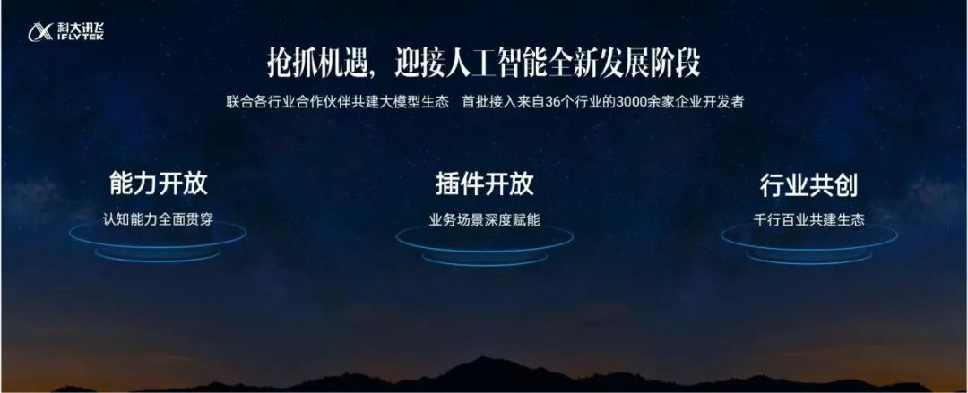 目前,訊飛開放平臺(tái)已經(jīng)開放了560項(xiàng)AI能力,并聚集了超過500萬生態(tài)合作伙伴。劉慶峰宣布,首批來自36個(gè)行業(yè)的3000余家企業(yè)開發(fā)者將接入星火大模型,聯(lián)合各行業(yè)合作伙伴共建大模型“星火”生態(tài)。