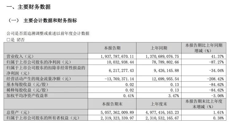 據(jù)西隴科學(xué)一季報,公司2023年第一季度營收19.38億元,同比增長41.37%;凈利潤為1003.2,9萬元,同比下降87.27%。