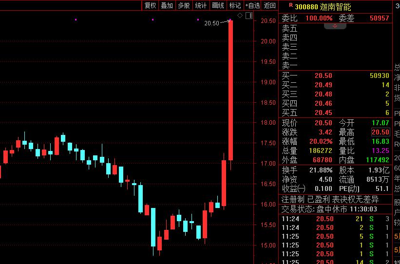 智能電網(wǎng)早間放量高開(kāi)高走,板塊指數(shù)漲逾1%,創(chuàng)3個(gè)月來(lái)新高,半日成交接近昨日全天成交。迦南智能(300880)開(kāi)盤后直線拉升,快速20%漲停,股價(jià)創(chuàng)1年多來(lái)新高;有方科技、萬(wàn)勝智能(300882)、南網(wǎng)能源(003035)等漲?;驖q超10%。