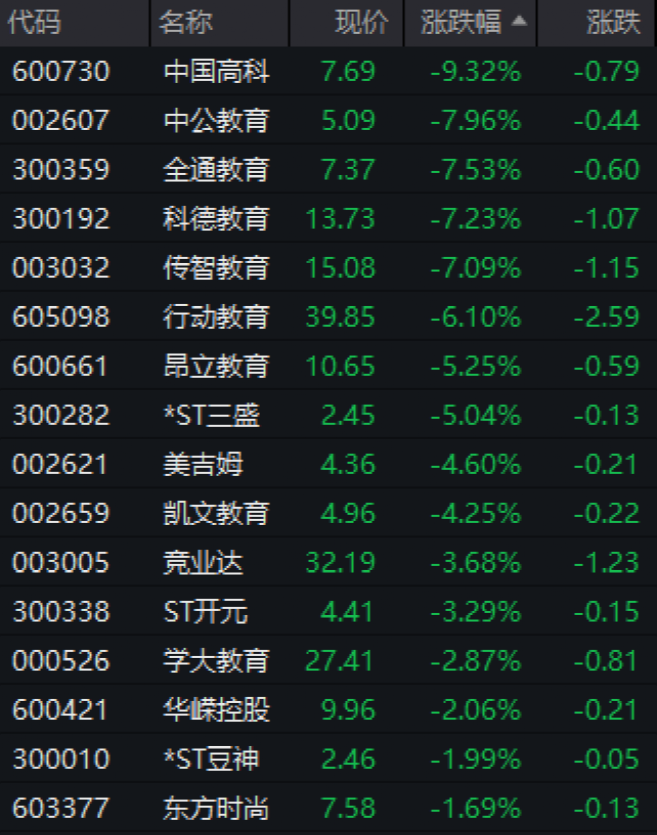 教育、傳媒板塊快速跳水
