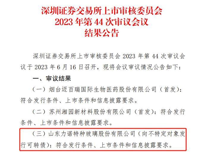 6月16日,山東力諾特種玻璃股份有限公司(股票代碼:301188,股票簡稱"力諾特玻(301188)”)可轉(zhuǎn)債發(fā)行申請成功過會。