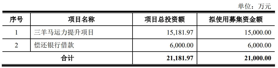 三羊馬擬通過公開發(fā)行可轉(zhuǎn)債的方式募集不超過2.1億元用于三羊馬運(yùn)力提升項(xiàng)目及償還銀行借款。