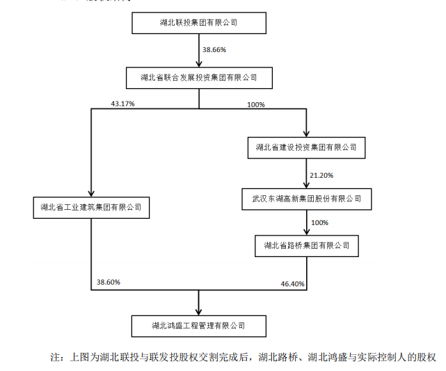 2022年7月,湖北聯(lián)投又與東湖高新間接控股股東湖北省聯(lián)合發(fā)展投資集團(tuán)有限公司(以下簡稱“聯(lián)發(fā)投”)簽署《股權(quán)轉(zhuǎn)讓協(xié)議》,將湖北聯(lián)投持有的湖北工建43.17%的股權(quán)注入聯(lián)發(fā)投。