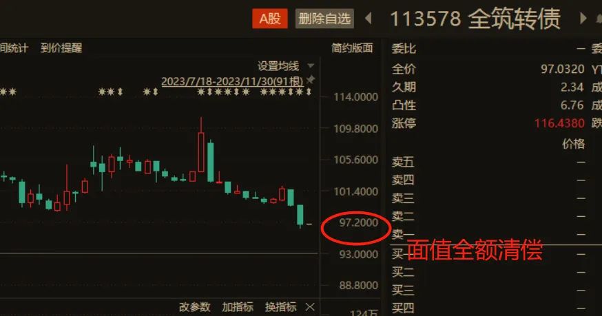 有意思的是,全筑轉(zhuǎn)債小額持有人再度躺贏,將輕松獲得3%的收益。根據(jù)重整計(jì)劃草案,5萬元以下小額普通債權(quán)將以現(xiàn)金全額清償,而正股*ST全筑則連續(xù)遭遇跌停。
