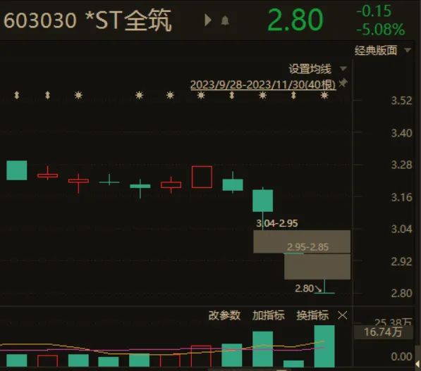 11月29日,重整計(jì)劃草案亮相,*ST全筑當(dāng)日無量跌停。11月30日,公司股價(jià)開盤略微上行,此后再度封于跌停板。兩個(gè)交易日,*ST全筑股價(jià)累計(jì)跌幅近10%。截至12月1日收盤,*ST全筑報(bào)收于2.8元。