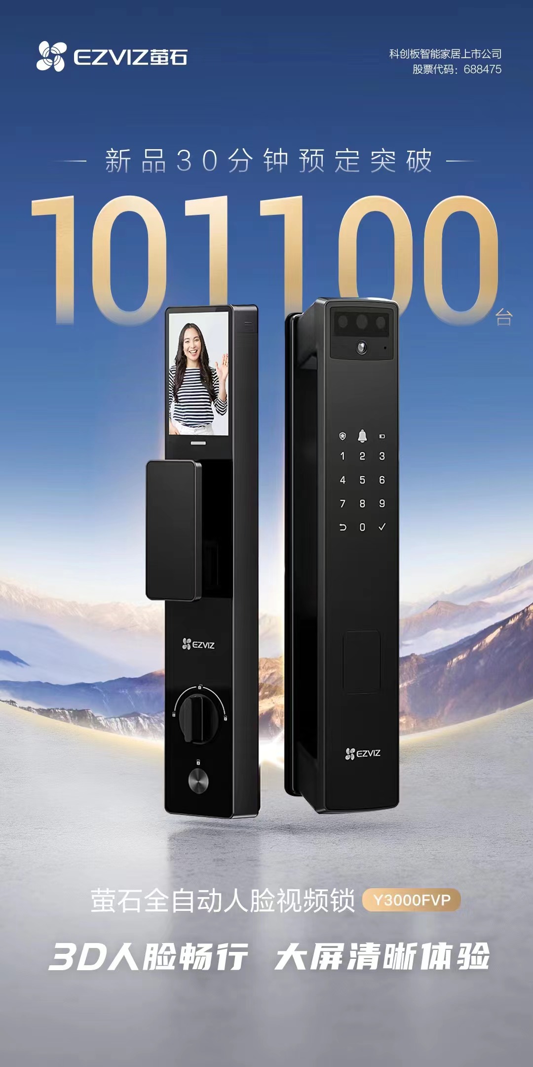 3月31日下午,螢石網(wǎng)絡(688475)傳出消息,在當日下午公司舉行的渠道合作伙伴大會上,公司螢石智能鎖訂貨火爆,其中一款Y3000FVP(螢石全自動人臉視頻鎖)單品,30分鐘預定突破10.11萬臺。