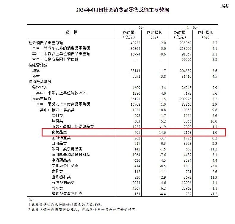 而且,上半年我國社會消費(fèi)品零售總額2.36萬億元,同比增長3.7%。而化妝品類零售總額為2168億元,較去年同期僅僅微增1%,已經(jīng)跑輸大盤。
